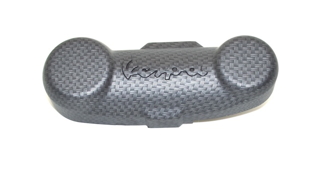 Hochwertige Abdeckung aus Kunststoff in Carbon Optik mit Vespa Schriftzug.